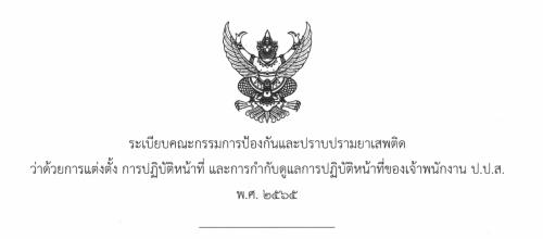 กฎหมาย ระเบียบ คำสั่ง และสาระน่ารู้ / ระเบียบฯ ว่าด้วยการแต่งตั้ง การปฏิบัติหน้าที่ฯ ของเจ้าพนักงาน ป.ป.ส. พ.ศ.2565