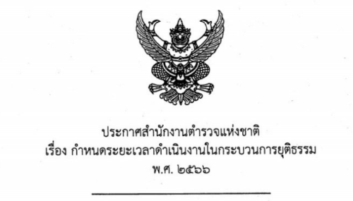 ประกาศ ตร.กำหนดระยะเวลาดำเนินงานในกระบวนการยุติธรรม พ.ศ.2566 (23 ม.ค.66)