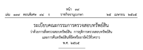 ระเบียบฯ การตรวจสอบทรัพย์สิน ว่าด้วยการสั่ง การยุติ และการคืนทรัพย์สิน พ.ศ.2565