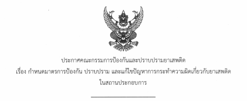 ประกาศฯ มาตรการป้องกันปราบปรามแก้ไขปัญหายาเสพติดในสถานประกอบการ (9 มี.ค.65)