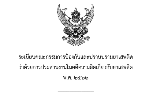 ระเบียบฯ การประสานงานในคดีความผิดเกี่ยวกับยาเสพติด พ.ศ.2566